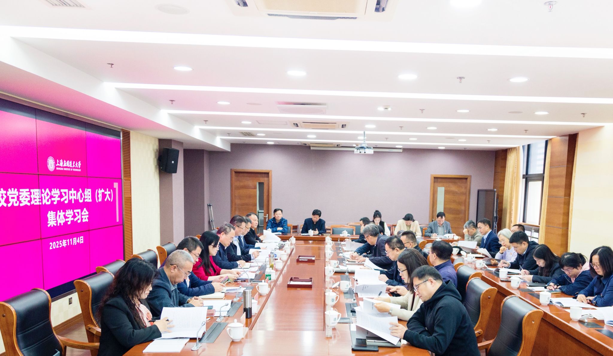 今天(11月4日)上午,上海应用技术大学党委理论学习中心组在奉贤校区举行集体(扩大)学习会,专题学习党的二十届四中全会精神。校党委书记郭庆松主持会议并就学习贯彻落实全会精神作出部署。校长汪小帆结合学校教育综合改革与“十五五”规划编制工作作交流发言。中心组全体成员及各二级党组织书记参加学习会。