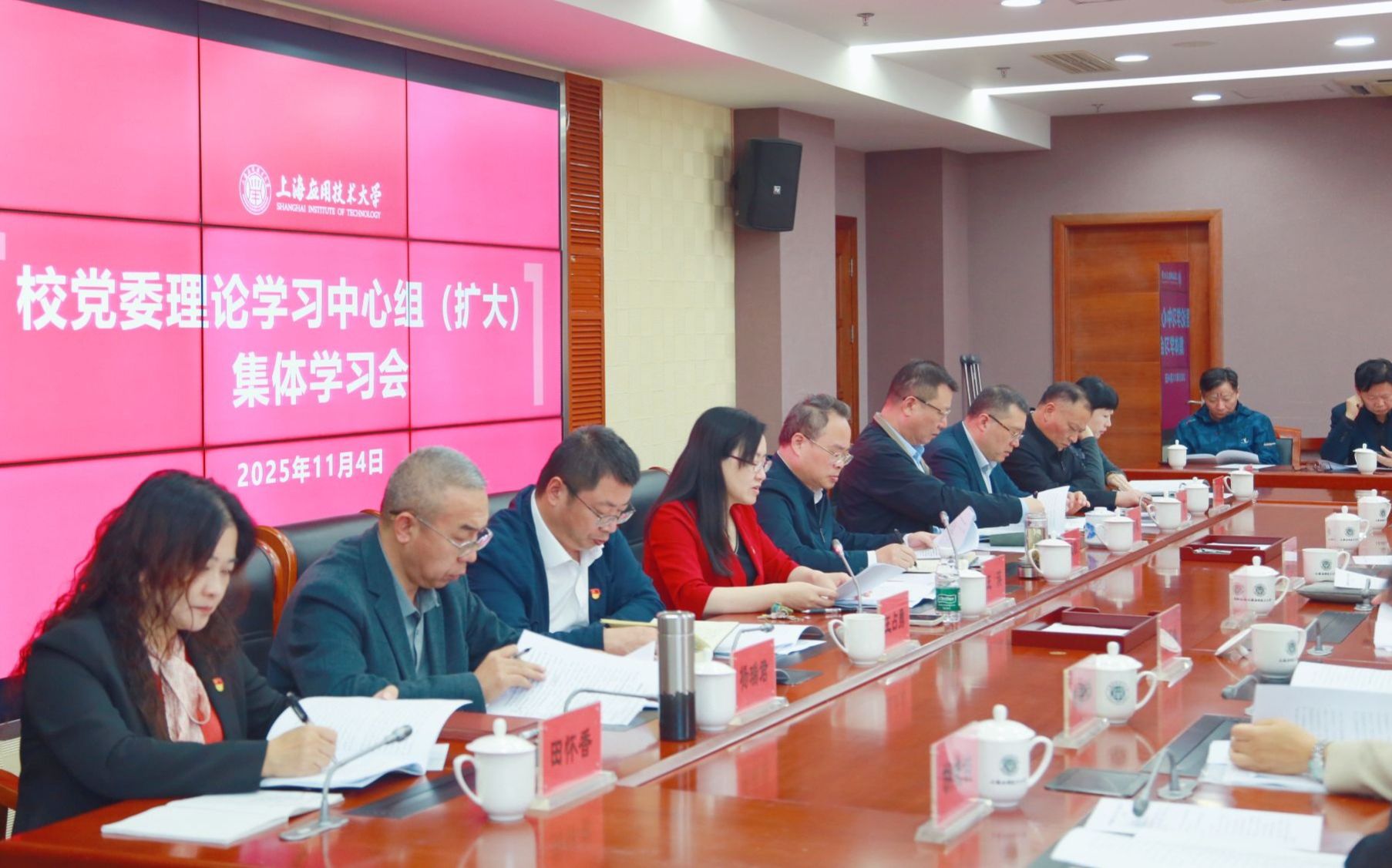 今天(11月4日)上午,上海应用技术大学党委理论学习中心组在奉贤校区举行集体(扩大)学习会,专题学习党的二十届四中全会精神。校党委书记郭庆松主持会议并就学习贯彻落实全会精神作出部署。校长汪小帆结合学校教育综合改革与“十五五”规划编制工作作交流发言。中心组全体成员及各二级党组织书记参加学习会。